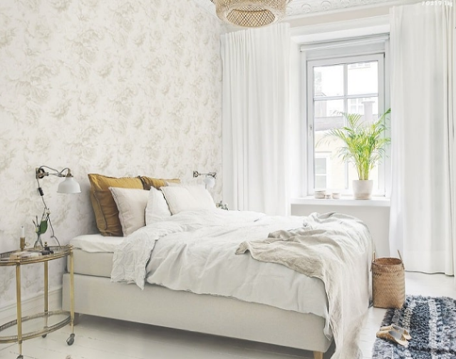 Trang trí phòng ngủ đẹp cho nữ giới bằng giấy dán tường